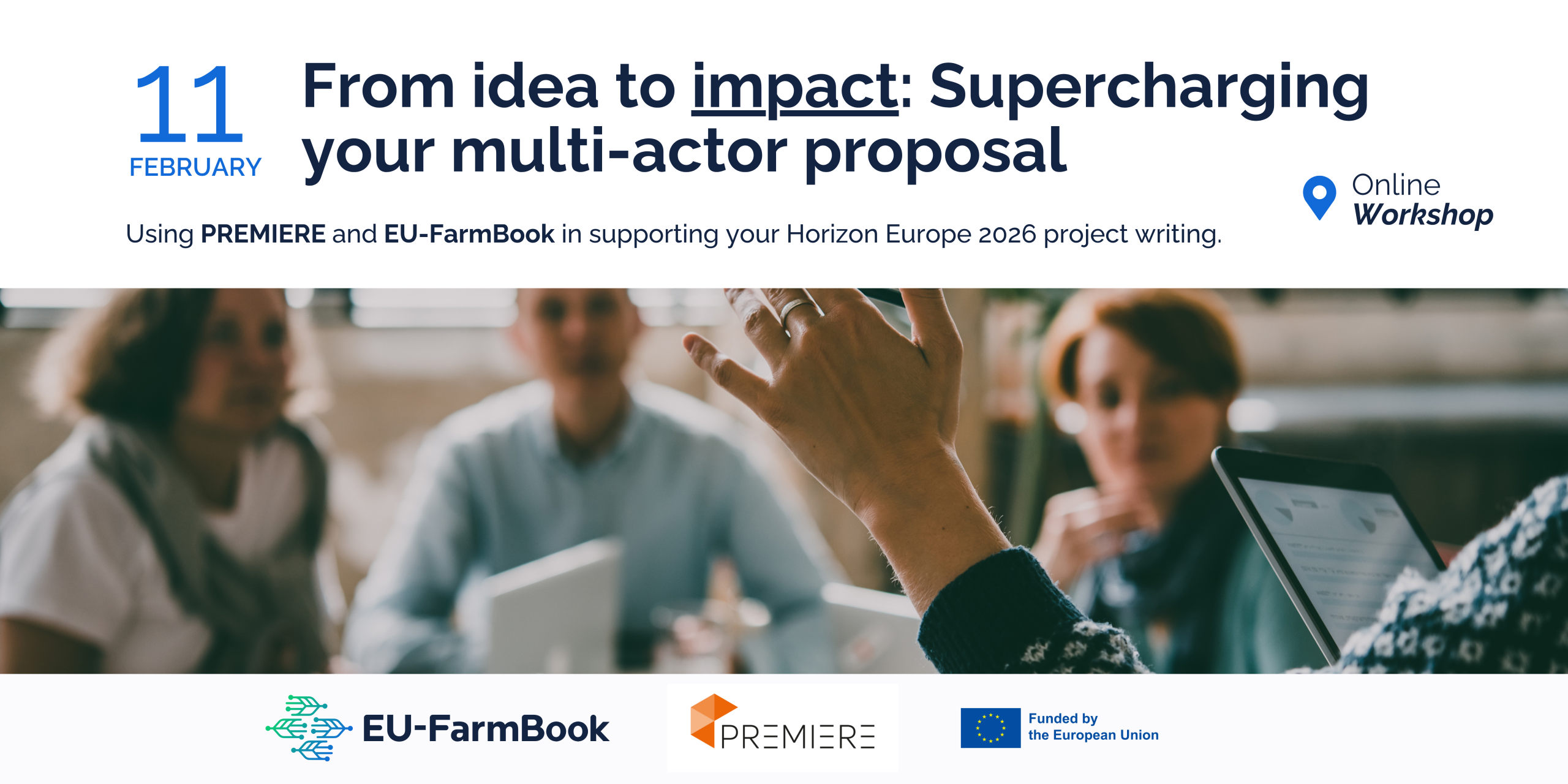 Are you preparing a multi-actor Horizon Europe 2026 proposal? This webinar will show you how to make your proposal more impactful and competitive from the very start. Learn how PREMIERE can help you design multi-actor proposals that embed the Multi-Actor Approach (MAA) co-creation principles and integrate the seven MAA requirements.